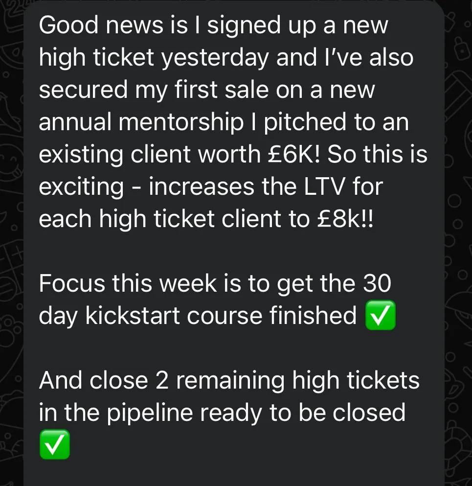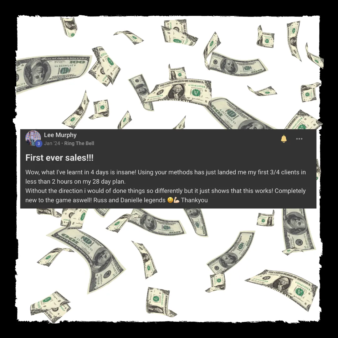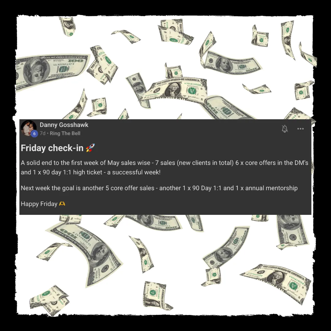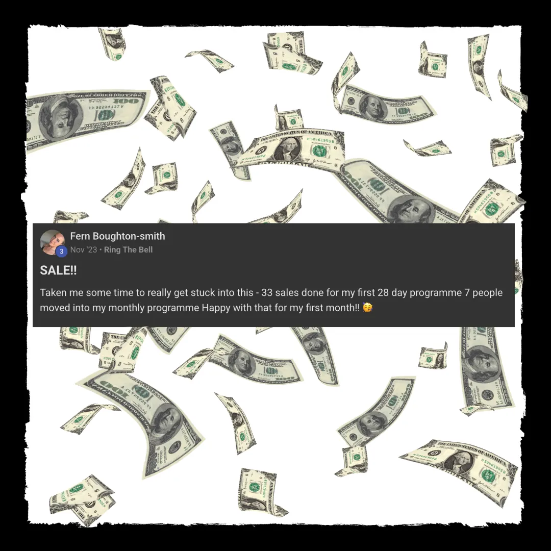 The "$1K in 14 Days" System: Our proven framework for getting you on track to $1,000 in the next 14 days - some of our clients have even made $7k in 2 weeks!
